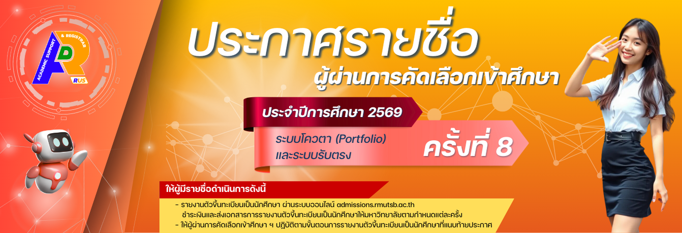 ประกาศรายชื่อผู้ผ่านการคัดเลือกเข้าศึกษา ประจำปีการศึกษา 2569 ระบบโควตา (Portfolio) และระบบรับตรง ครั้งที่ 7