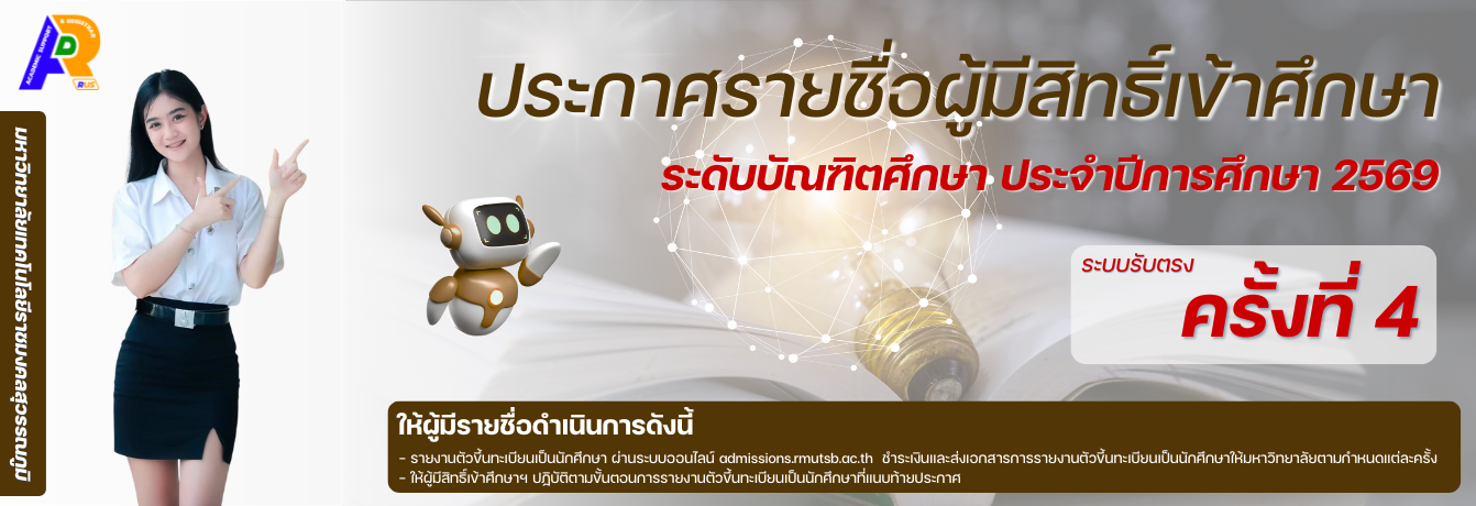 ประกาศรายชื่อผู้ผ่านการคัดเลือกเข้าศึกษา ระดับบัณฑิตศึกษา ประจำปีการศึกษา 2569 ระบบรับตรง ครั้งที่ 4