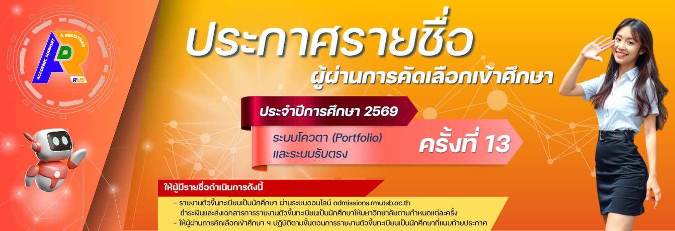ประกาศรายชื่อผู้ผ่านการคัดเลือกเข้าศึกษา ประจำปีการศึกษา 2569 ระบบโควตา (Portfolio) และระบบรับตรง ครั้งที่ 13
